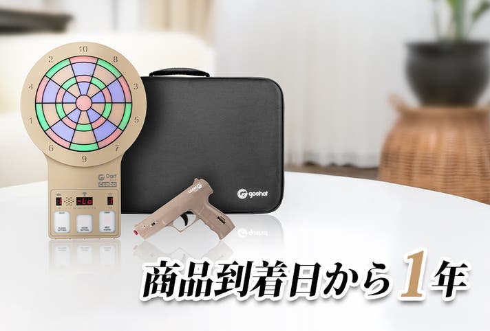 商品到着日から1年以内に初期不良や、DartShotCombo本体及びLaserGunを通常の方法でご使用されていて不具合が発生した場合、無償にて修理、交換いたします。