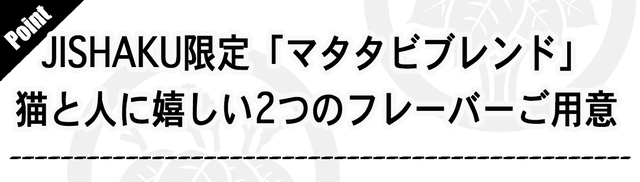 「ORIGINAL」と「MATATABI」2種類のフレーバーともに、人と猫が同時に楽しむことができる美味しさと安全性を両立しました。「ORIGINAL」フレーバーは、高知県産宗田節をベースに、いわしやさばの節、昆布など猫にも安心して与えられる健康的な天然素材を独自にブレンドしました。そして、もう一つのフレーバーはJISHAKU独自開発となる宗田節ベースのブレンド鰹出汁にマタタビを加えた「MATATABI」。マタタビは、猫にも安心して与えられる量の0.5グラムを配合。古くからお茶としても楽しまれるマタタビは、人にとっても新鮮で健康的な味わいの出汁としてお楽しみいただけます。