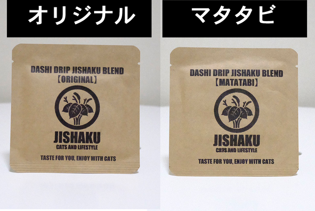 共に暮す猫と人がシェアできる化学調味料、食品添加物無添加・無塩の「DASHI DRIP JISHAKU BLEND」の「ORIGINALフレーバー」と「MATATABIフレーバー」を各2個、合計4個お届けします。猫と暮らしていなくてもお楽しみいただける、ドリップコーヒースタイルで楽しむ、ブレンド出汁です。