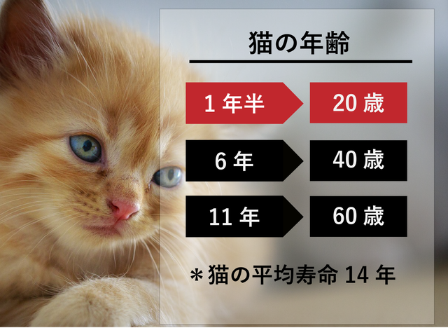 平均寿命が約14年と言われる猫は、人の何倍もの速さで歳をとっていきます。猫と暮らす私達JISHAKUのメンバー自身の体験として、何気ない日常の中で見た目以上に成長していく猫たちにどこか鈍感になっていると感じました。人間年齢20歳に相当する”猫の成人”は生後1年半で訪れ、その後7歳には壮年期、11歳にはあっという間に老齢期に入ります。