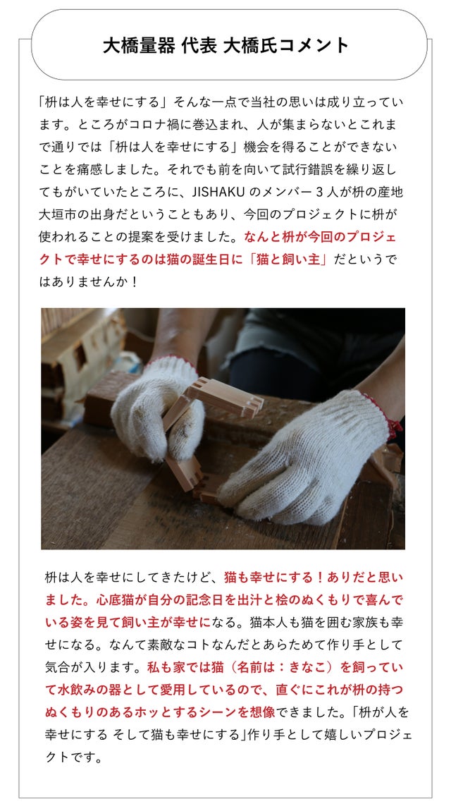 - 日本一の生産量を誇る地域と職人と作る、猫とお揃いの食器として使える「枡」