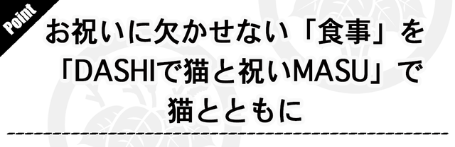 「食を共にして、お祝いする」という、人と人の間ではごく当たり前でありながら、猫と人の間ではなかなか経験することができない体験を「DASHIで猫と祝いMASU」で手軽に皆様の生活に取り入れられます。祝いの席にふさわしい縁起物であり、猫と人をつなぐモノとして「鰹節」と「枡」に着目しました。