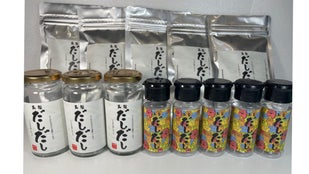 短期間で完成出来ない可能性がありますので、まずレギュラー品の「元祖だしだし」瓶タイプと詰め替え用を各種お送りいたします。