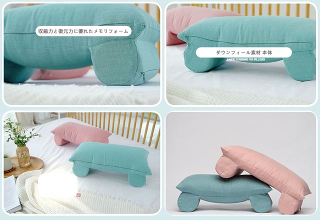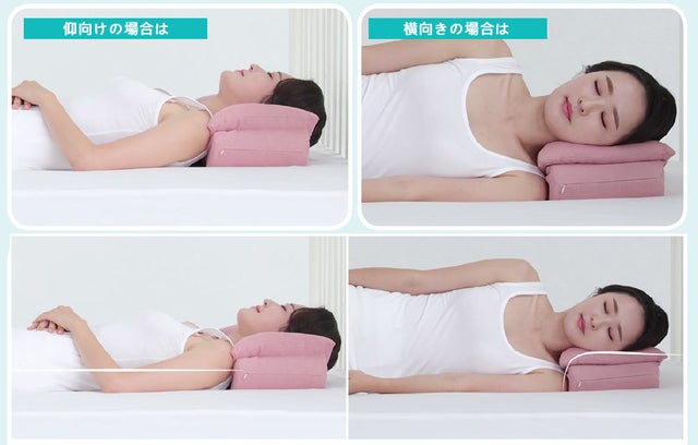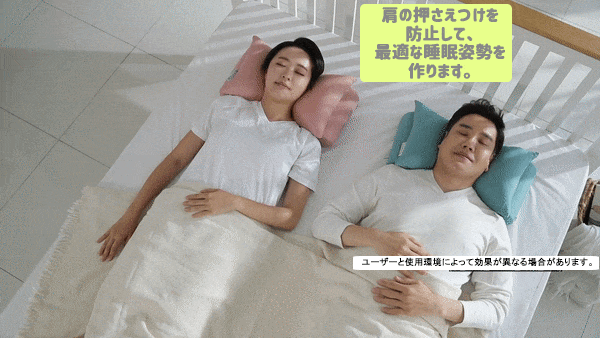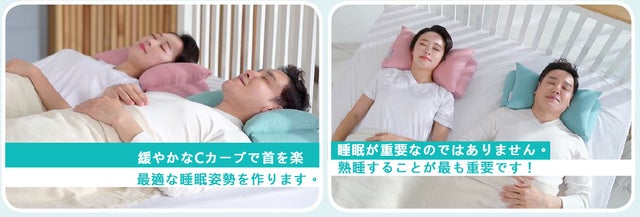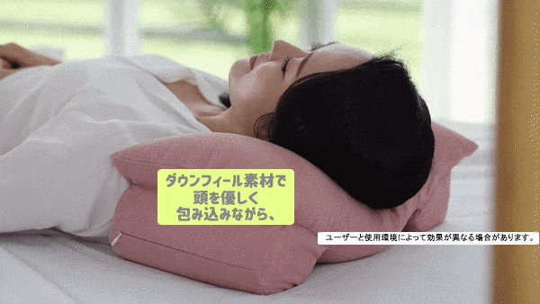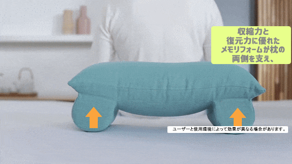 - 枕が顔の両側をやさしく包み込んで、安眠をサポートします。