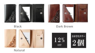 仕様等は従来品と同様で、薄さとコンパクトさを意識しつつ、長く使う程、革の味がでてくる本革を使用し、職人が時間をかけて作る伝統技法『透かし彫り彫刻』のデザインを加えたものが今回のプロジェクトです。