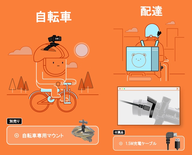 たった一台「DB-5」だけで、多用途性あり、バイク専用やヘルメット専用だけではなく、様々な場面で使えます!
