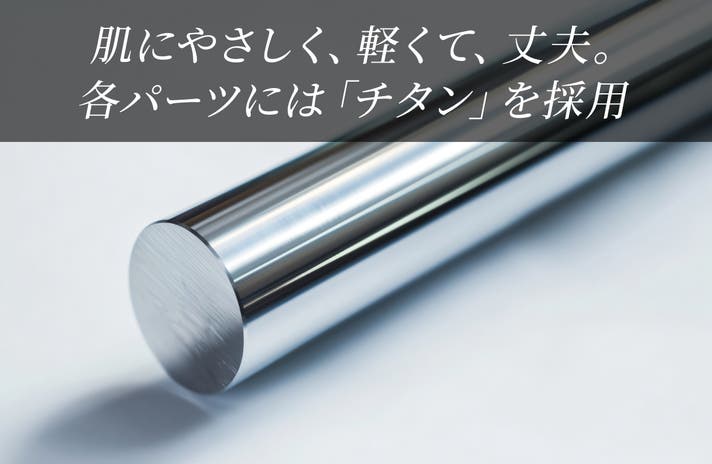 チタンは、汗や水に強くて錆びにくく、鉄の約2倍の強度を持ちながら非常に軽いという特性をもった金属です。
