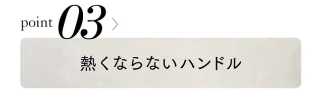 ハンドル部分にもステンレスを採用。高温調理中も熱くならない内部中空構造。濡布巾やミトンなどを巻く必要はなく、直接手で握ったまま調理が出来ます。