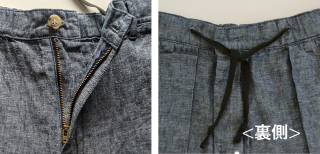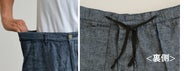 麻混率が半分以上の55%あるので綿の保湿性が軽減され、麻の発散性や通気性により水に濡れてもすぐ乾きやすい。梅雨のジメジメした時期や湿気の多い夏にかけてさらりとした履き心地が続きます。