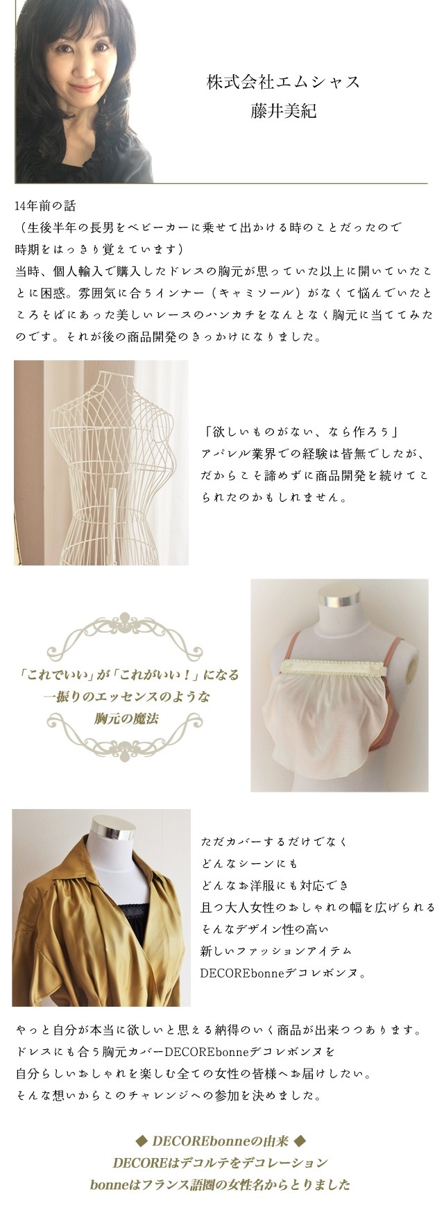 ドレスにも合う胸元カバー【DECOREbonneデコレボンヌ】の藤井美紀です