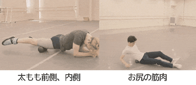 ③背中を当て前後にゆっくりローリング運動を行い深筋膜リリース効果を得ることができます。