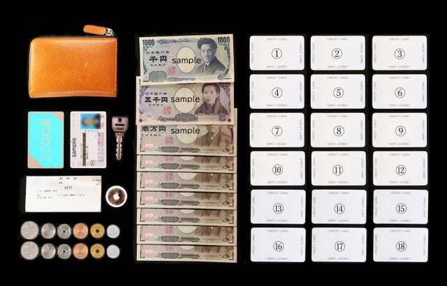 ICカード1枚, キャッシュカード18枚, 領収書,