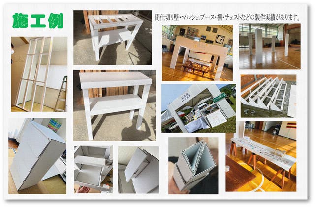 - 紙製なので廃棄やリサイクルが容易。加工も簡単工具も最低限。店舗以外にも様々な大型工作を作れる!