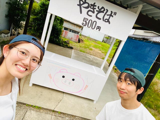 使用例:カーポートで焼きそば屋さん。自宅キッチンで調理したものをカーポートの販売屋台にて販売するという設定で作りました。
