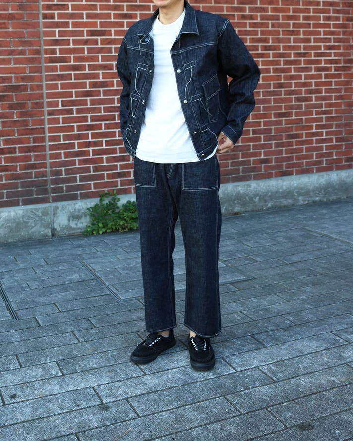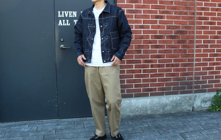 - デニムの聖地、岡山県産の生地を採用。色合いや風合いを追求し、着こむほどに自分だけの一着に!