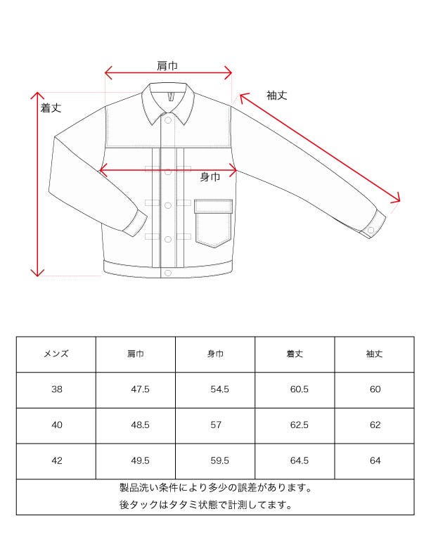 A.寸法表をご確認いただき、ご了承の上ご購入ください。※商品の縫製後の洗い加工の特性上、多少のサイズ違いがございます。