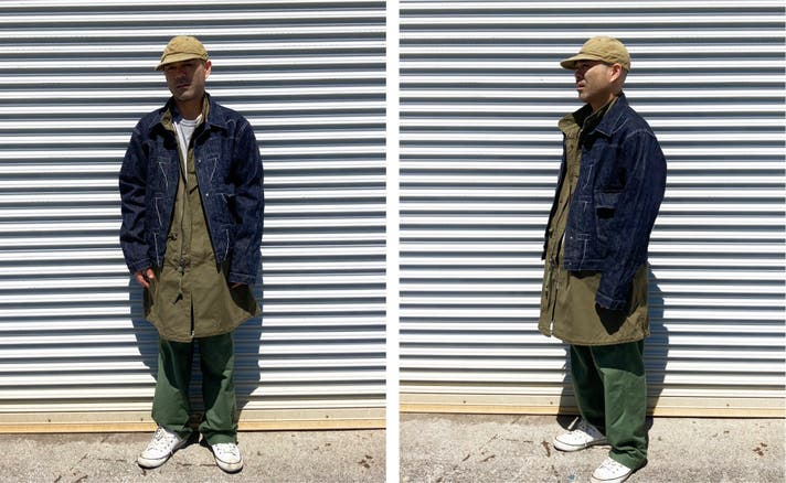 普遍的でスタンダードなデザインなのでスタイルを選びません。濃いインディゴブルーはインナーやパンツなど、色を気にせず合わせられます。