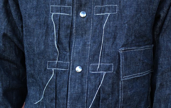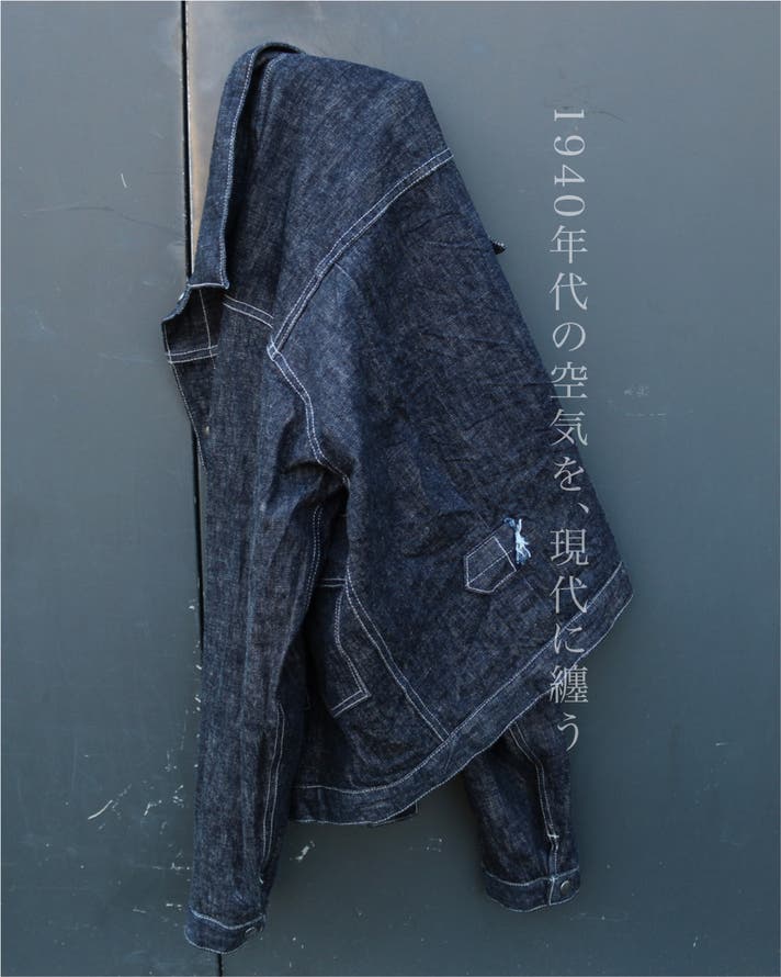 1940年代に実在したヴィンテージワークジャケトをモデルに、単に再現するのではなく、生産過程で起こるエラー縫製を意図的にディテールとして落とし込み、当時の質感を再構築しました。
