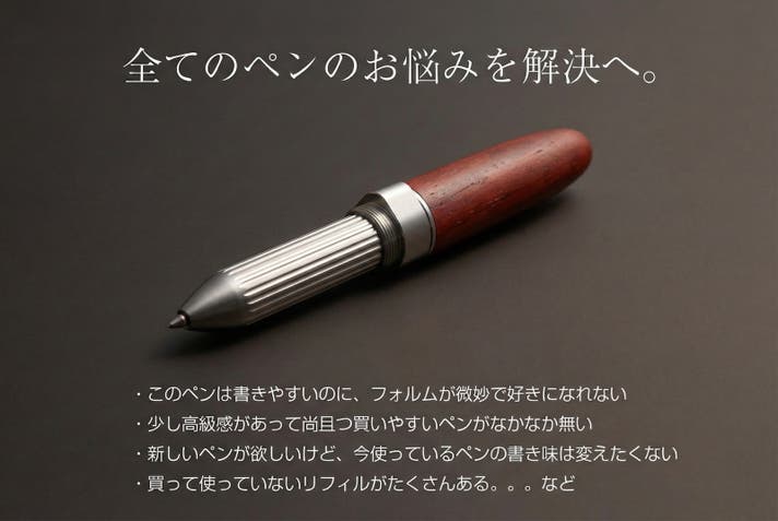 「Makuake(マクアケ)」は、実行者の想いを応援購入によって実現するアタラシイものやサービスのプラットフォームです。このページは、 プロダクトカテゴリの 「市販品のリフィルが使える革新的なペンジャケット第5弾!天然木/カーボン仕様」プロジェクト詳細ページです。
