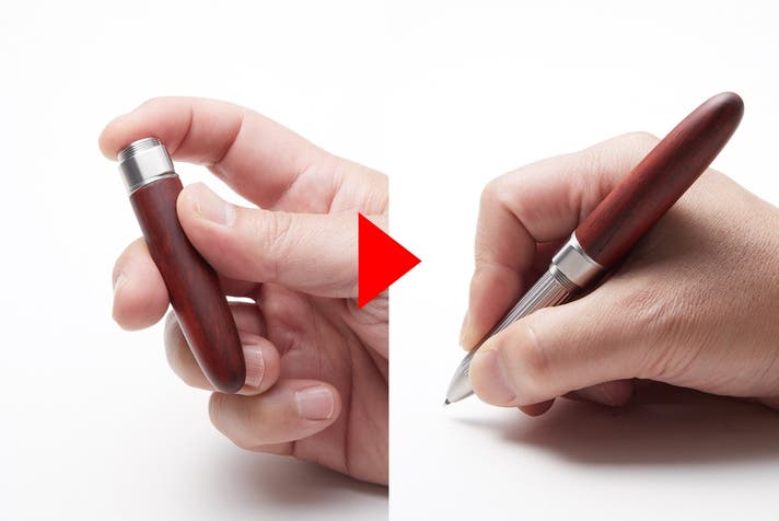 第5弾(第4弾)のキーコンセプトである”携帯性”。キャップ部分がボディを兼ねる構造により、収納時には全てがキャップの中に収まります。今までのペンにはない携帯性を向上させました。また収納時にはペンがスタンド無しで自立が可能です。