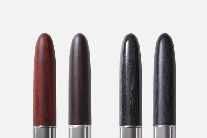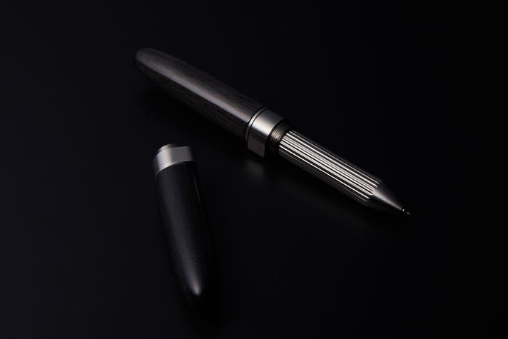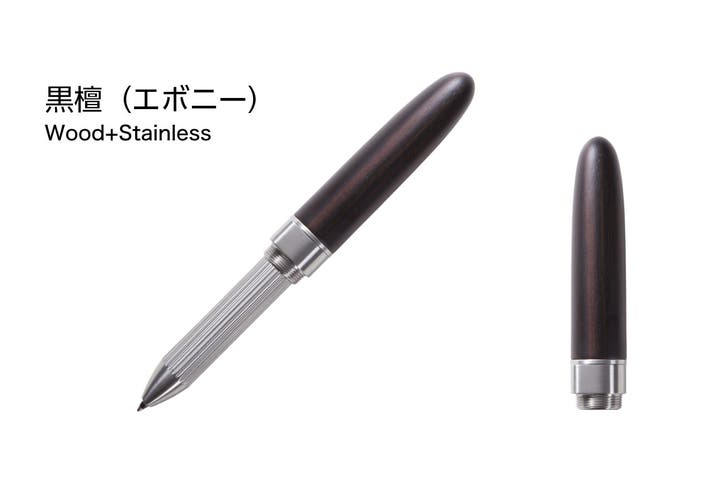 主要パーツについてはグリップ部がステンレス(SUS304)、ボディおよびキャップ部が木材またはカーボンで構成されています。無垢のブロック材から高精度CNC加工で削り出され、職人の手作業で仕上げられた各パーツはピッタリと組み上がります。
