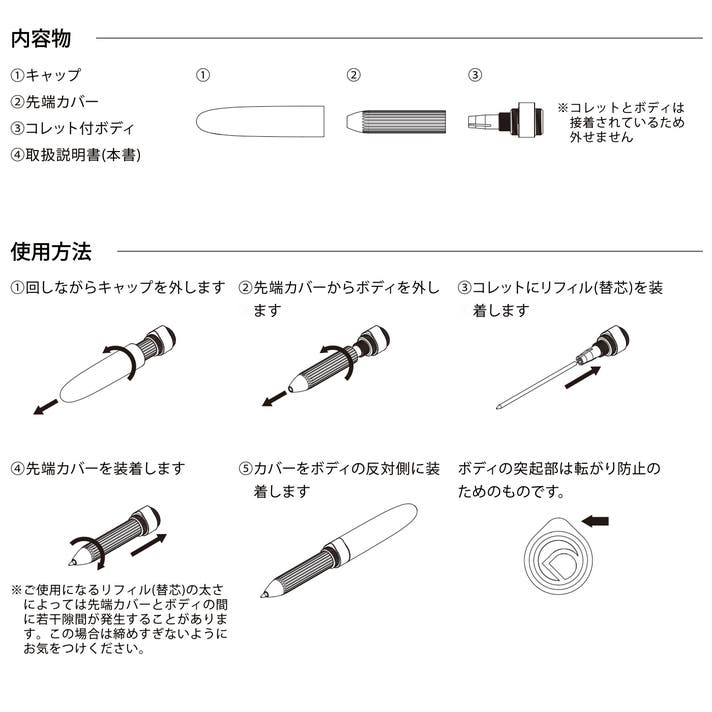・本製品を使用する前に緩みがないか確認をしてください。緩みがあると、リフィル(替芯)が動いたりする場合があります。