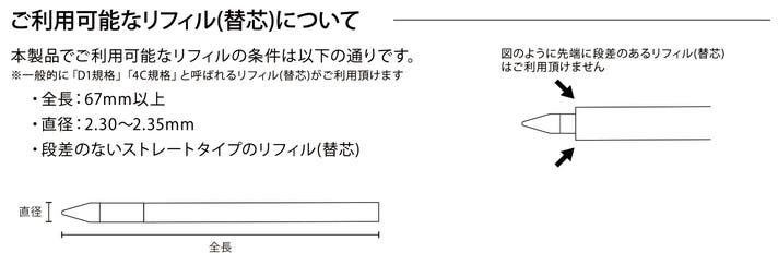 対応リフィル:D1 ,4Cタイプ(全長67〜xxmm、直径2.30〜2.35mm)