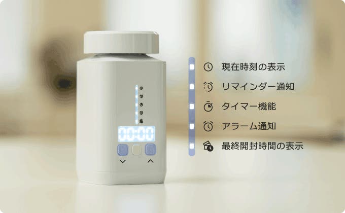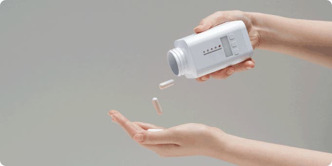 デュアル通知システムにより、スマートフォンアプリと薬瓶本体(光・音)の両方で通知するため、飲み忘れのリスクを大幅に低減します。