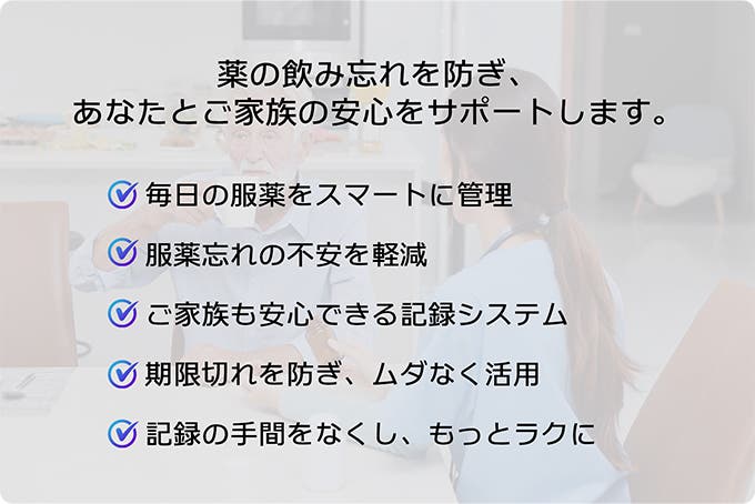 服薬管理のハードルが下がり、三日坊主を防いで継続的な健康習慣を築きやすくなります。