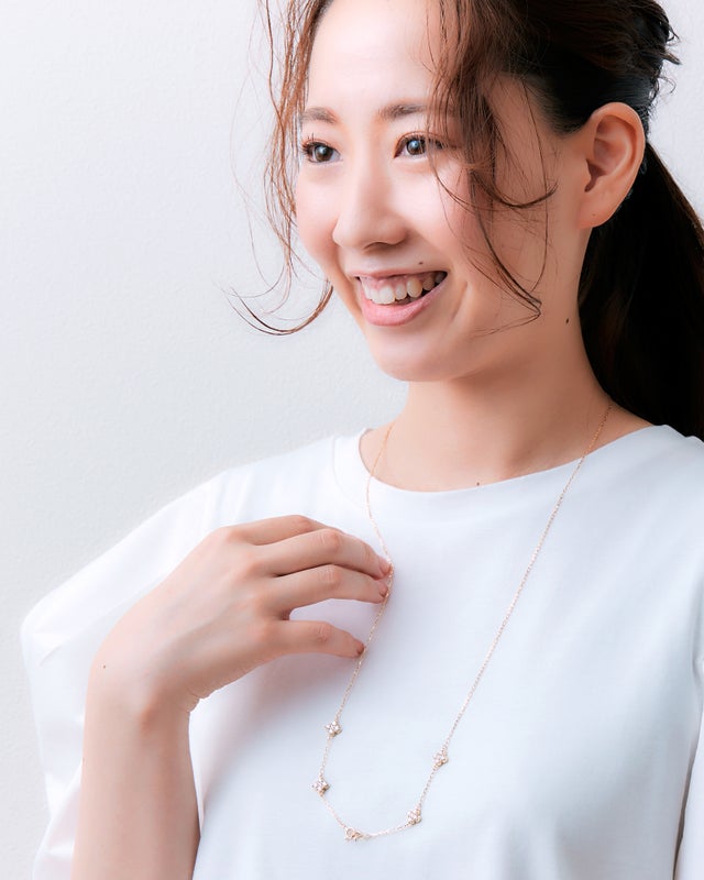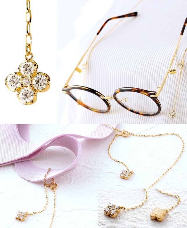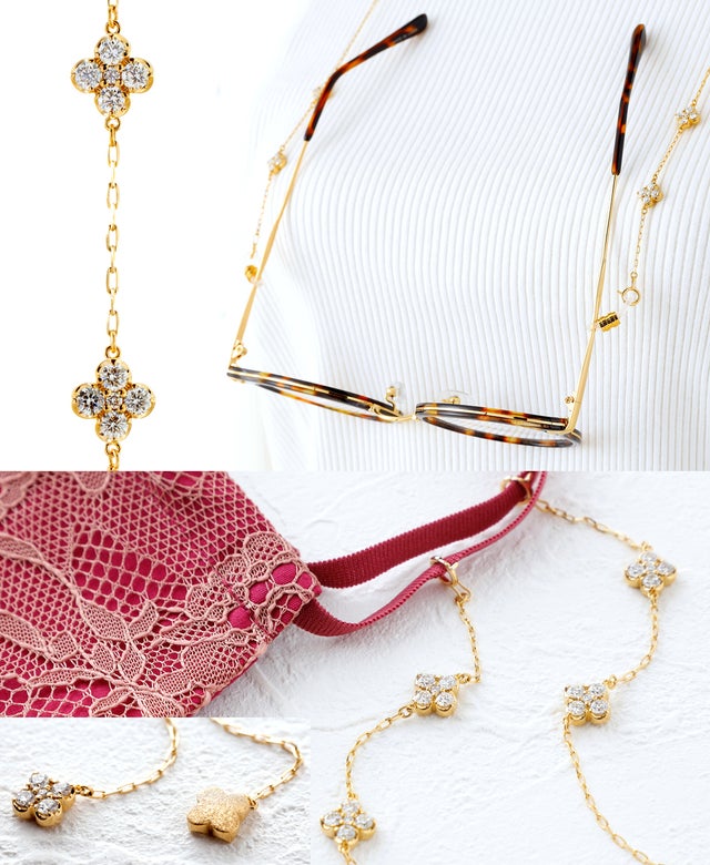 ダイヤモンドで描いた4つの美しい花を贅沢にあしらった、大人の気品あふれるネックレス。お気に入りのメガネやマスクに着用すると、お顔周りもグッと華やかな印象に。身に着けるたびに、お花畑のような優しさにつつまれて…