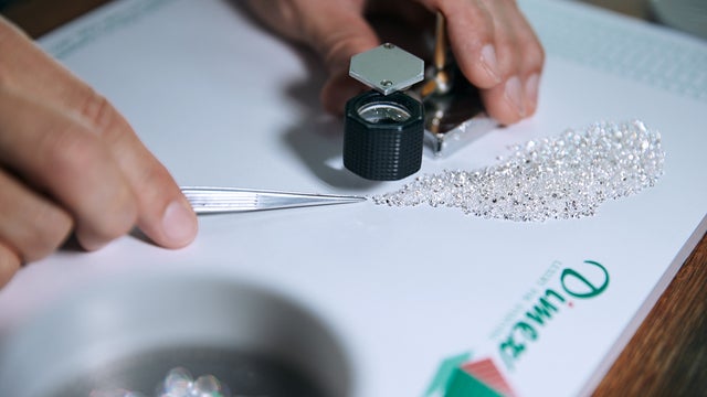 それは採掘現場から発掘された1粒のダイヤモンドが宝石商の手へと渡り、いくつかの工房で伝統的なカットや研磨の装丁を施され、厳選された天然のダイヤモンドのみを熟練のジュエリー職人が丁寧に加工して、お客様のもとへ…