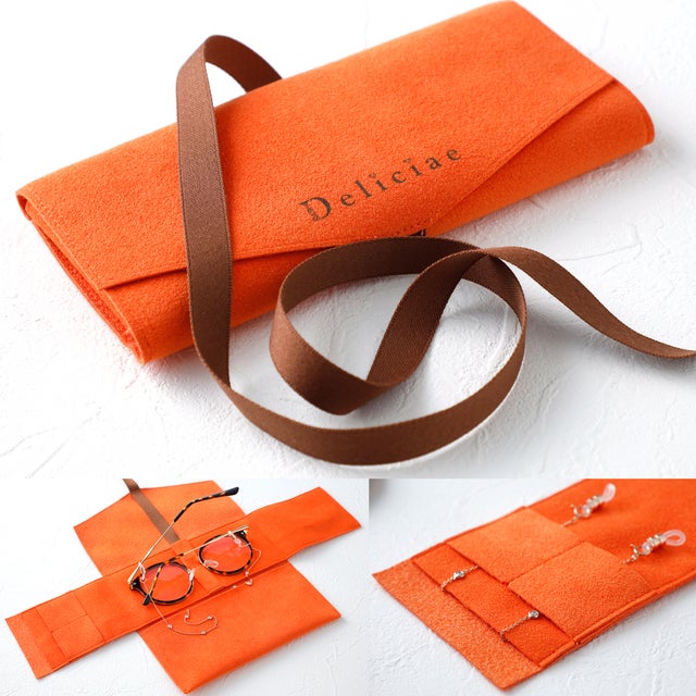 ロングチェーンとメガネの携帯や収納に便利な、Deliciaeネックレス専用のオリジナルトラベルポーチ付き(※ポーチはきせかえチャーム単品には付属しません)