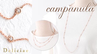 「カンパニュラ」はラテン語でベル・釣り鐘の意味を表します。心地よいリズムを刻む小さなベルのような、胸元でいつまでも響き続ける25粒のダイヤモンドたちの音色を感じてください。