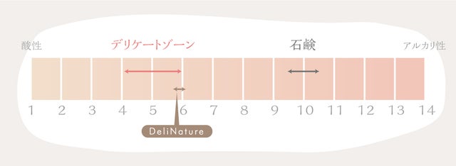 デリナチュレはデリケートゾーンのお肌に近いpH値なので、やさしい使い心地です。