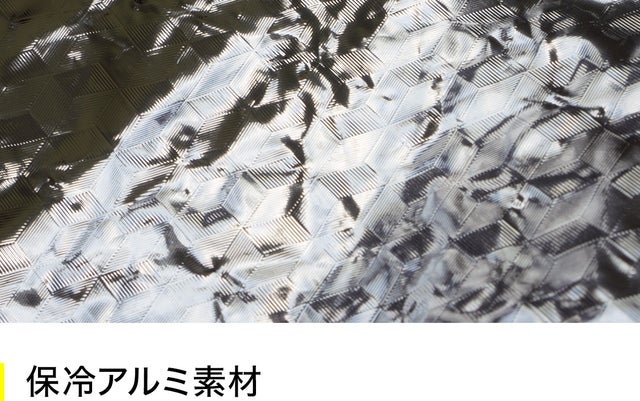 バックの内側全面にはバック内の温度変化を助けるアルミ素材を貼付。