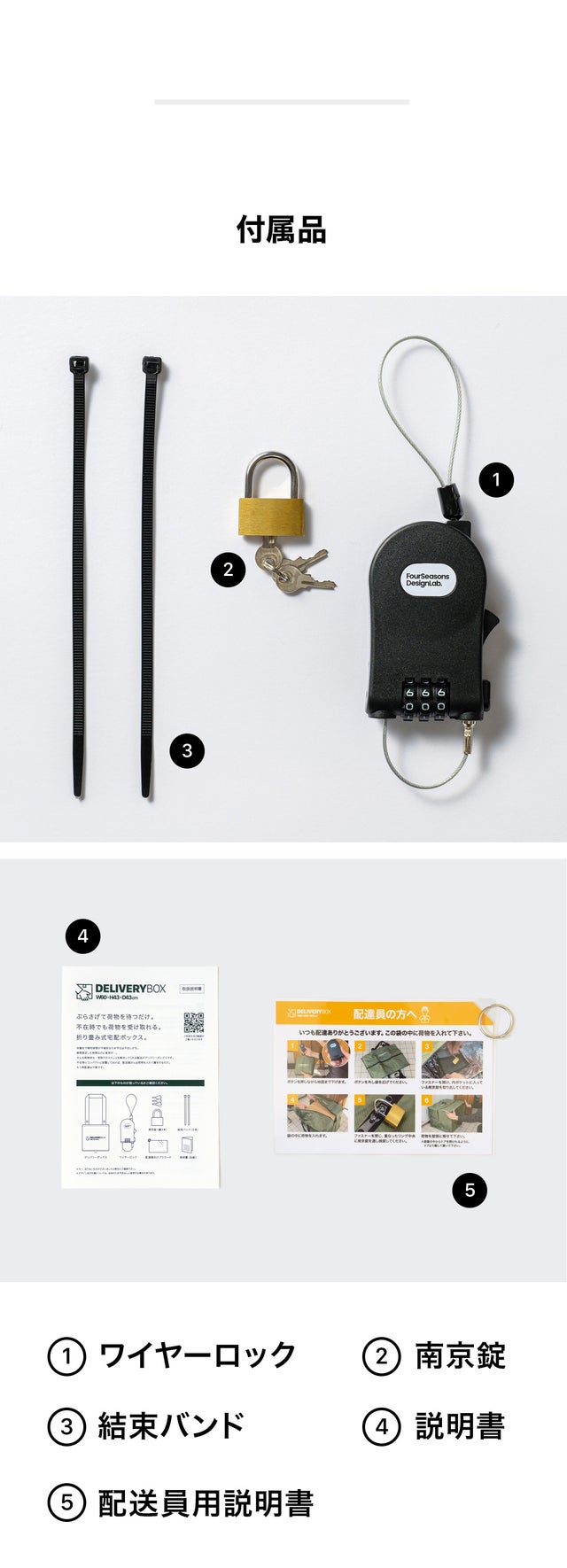 荷物を届けに来てくれた配送員さん用に、デリバリーボックスの使い方をわかりやすく解説したラミネート加工済みの説明書が付属されています。