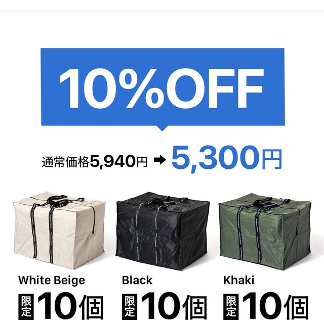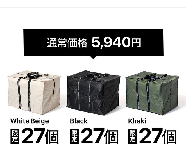 カラー展開は「ホワイトベージュ / ブラック / カーキ」の3色です。