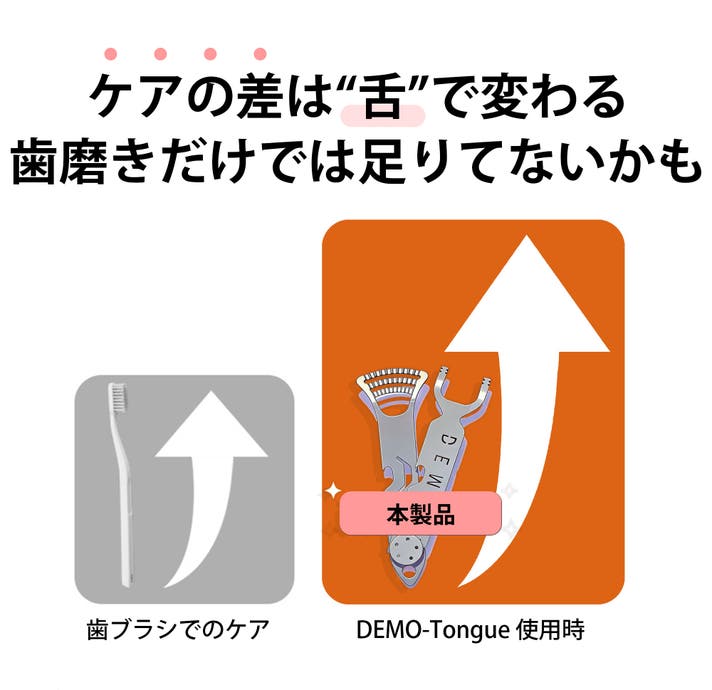汚れを、そのままにさせない“DEMO-Tongue”が誕生。そんな本製品があれば、歯だけでなく、舌や歯間など見落としがちな部分までケアでき、毎日のオーラルケアを一歩先へ導きます。