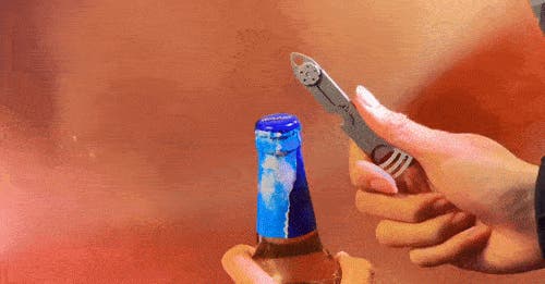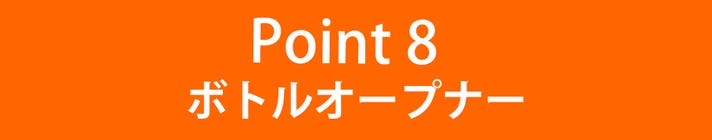 本体にはボトルオープナー機能をさりげなく組み込みました。力をかけやすい位置と形状により、手にしっかりフィットして操作できます。