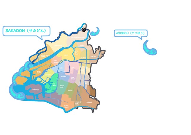 2つのキャラクターを組み合わせて作った地図アートが今回の" SAKADON!とASOBOU!@Osaka city24”です。