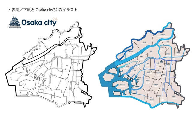 これまでの大阪市と24区の長い歴史や街の魅力について地図アートを通して発信できると思い、大阪市の"FUNNY☆Map Art"を企画・制作しました。