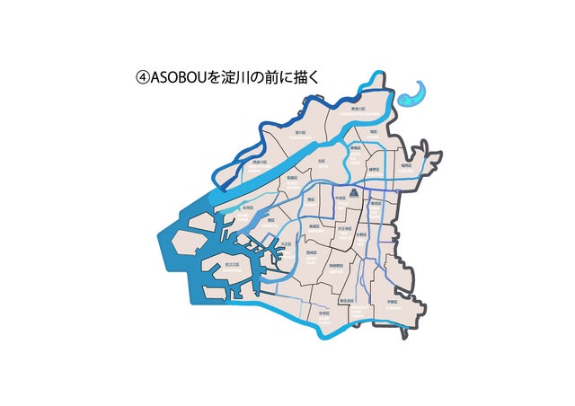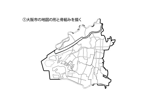 1.大阪市の地図を使ってこんな風に見えるを形にしてイラストとキャラクターを作る