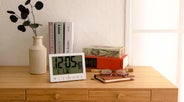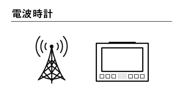 電池を入れると「日本標準時」をのせた標準時刻電波を受信して正確な時刻を自動で表示します。