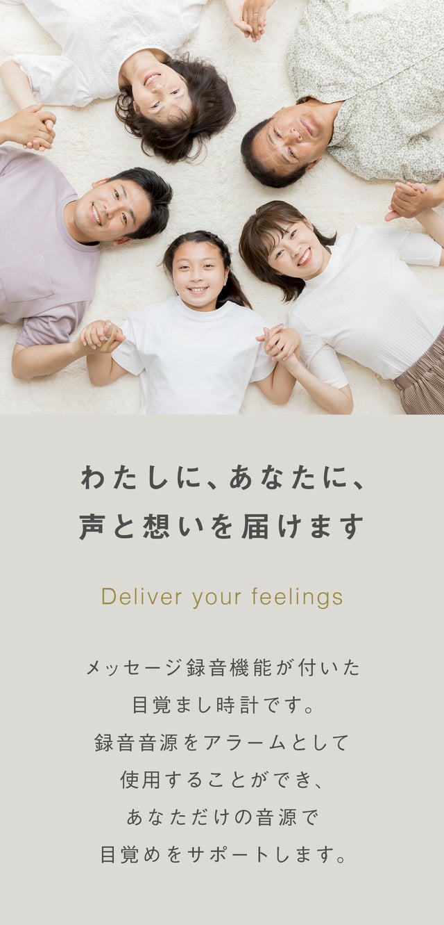 例えばお子さま、お孫さまの「起きて!」の声なら、またいつもとは違った目覚めになるでしょう!