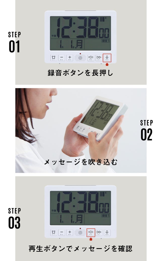 - 【メッセージ録音機能】最大約60秒の録音を3パターンまで保存することができます!