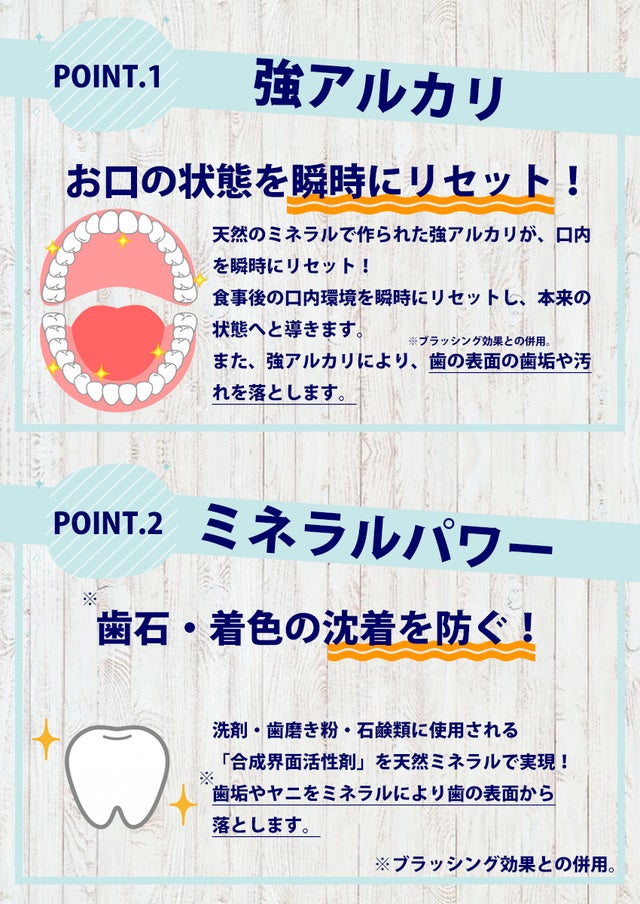 - ミネラル由来の強アルカリでお口の状態を瞬間ケア!