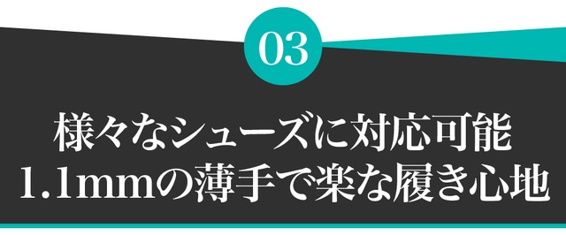 - 1.1mmの薄いパッドで抜群の履き心地、様々なシューズに対応可能!