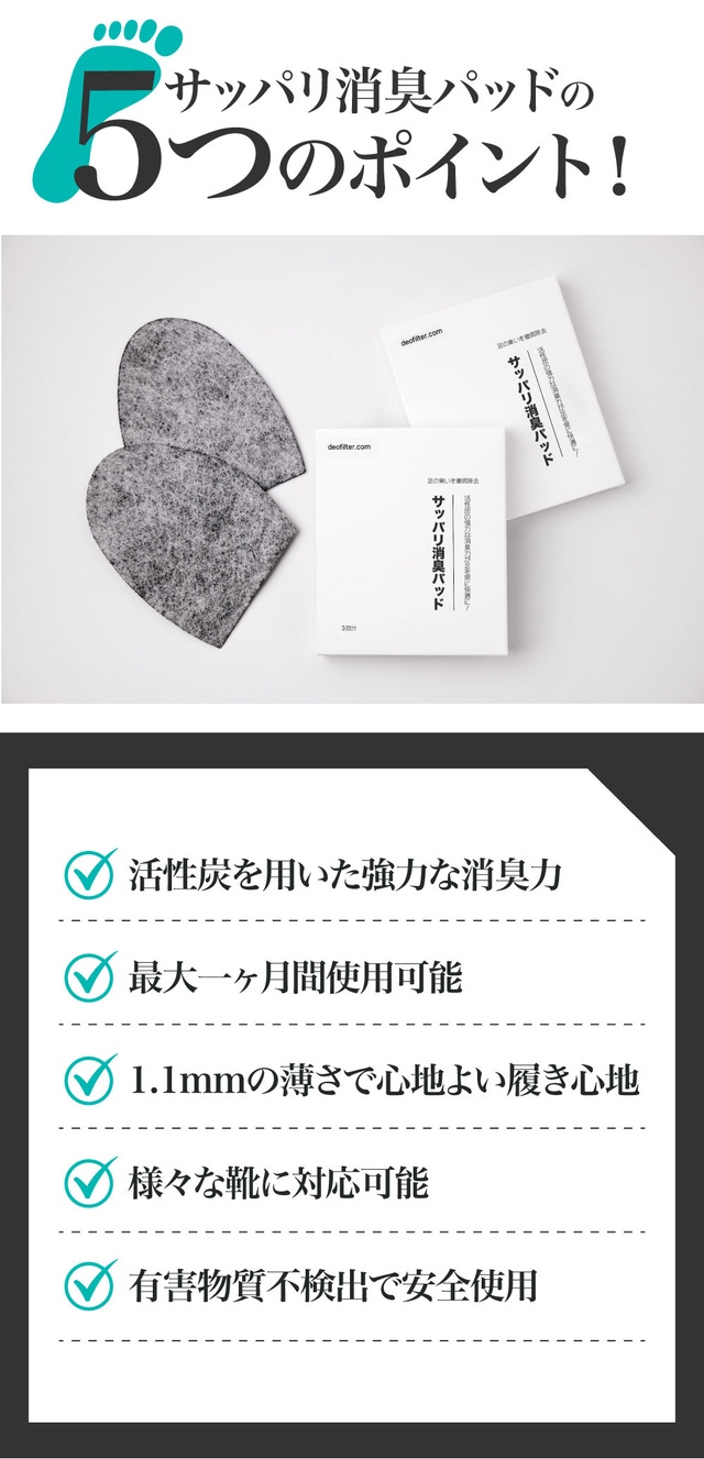貼るだけで消臭ができる新概念の靴脱臭パッドです。