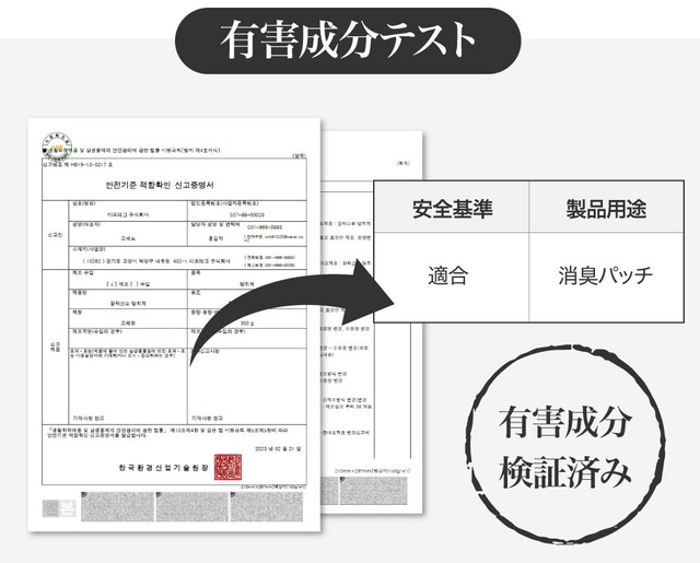 サッパリ消臭パッドは検証された機関を通じて有害成分テストを実施し、安全性が認められました。