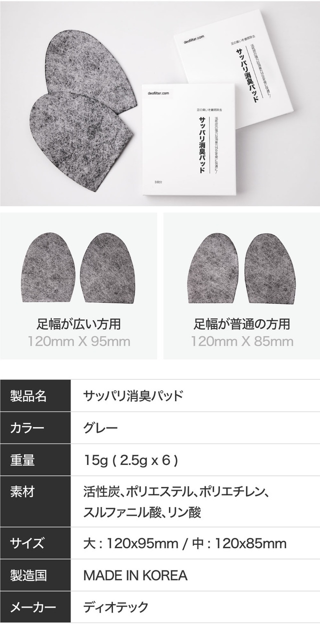 消臭効果が強力なヤシ活性炭を混ぜて自社だけの技術で靴の中を素早く脱臭できるように開発されました。